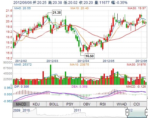 今 開: 20.25 成交量: 11676手 振 幅: 1.78% 最 高: 20.38 成交額: 2358.79萬 換手率: 0.57% 最 低: 20.02 總市值: 60.13億 市凈率: 4.95 昨 收: 20.27 流通...