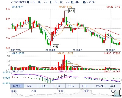 | 今 開: | 6.68 | 成交量: | 9078手 | 振 幅: | 1.96% |