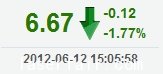 | 今 開: | 6.76 | 成交量: | 6712手 | 振 幅: | 1.33% |