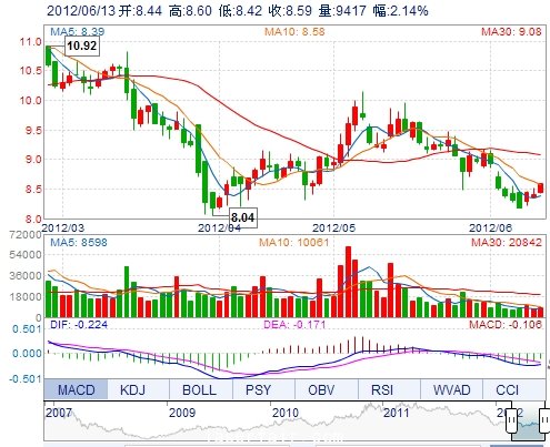 | 今 開(kāi): | 8.44 | 成交量: | 9417手 | 振 幅: | 2.14% |