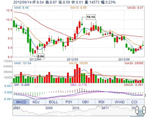 今 開: 8.64 成交量: 14572手 振 幅: 3.26% 最 高: 8.87 成交額: 1270.46萬 換手率: 0.75% 最 低: 8.59 總市值: 17.15億 市凈率: 3.56 昨 收: 8.59 流通市值...