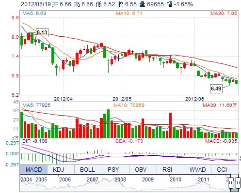 今 開: 6.66 成交量: 69655手 振 幅: 2.10% 最 高: 6.66 成交額: 4594.21萬 換手率: 0.74% 最 低: 6.52 總市值: 68.41億 市凈率: 2.30 昨 收: 6.66 流通市值...