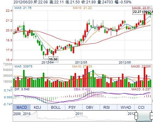 今 開: 22.08 成交量: 24703手 振 幅: 2.77% 最 高: 22.11 成交額: 5373.20萬 換手率: 1.21% 最 低: 21.50 總市值: 65.16億 市凈率: 5.37 昨 收: 22.02 流通...