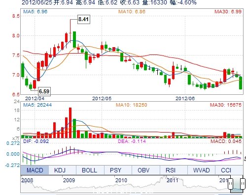 | 今 開(kāi): | 6.94 | 成交量: | 16330手 | 振 幅: | 4.60% |