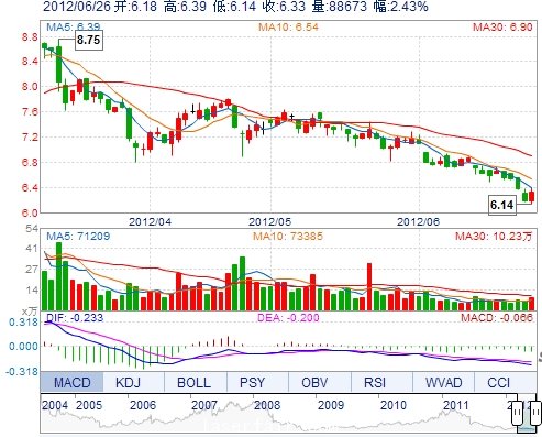 | 今 開(kāi): | 6.18 | 成交量: | 88673手 | 振 幅: | 4.05% |