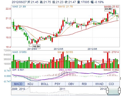 今 開: 21.45 成交量: 17005手 振 幅: 2.42% 最 高: 21.75 成交額: 3660.15萬(wàn) 換手率: 0.83% 最 低: 21.23 總市值: 63.91億 市凈率: 5.26 昨 收: 21.51 流通...