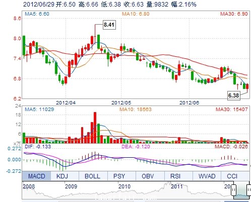 今 開: 6.50 成交量: 9831手 振 幅: 4.31% 最 高: 6.66 成交額: 640.50萬 換手率: 0.36% 最 低: 6.38 總市值: 18.90億 市凈率: 3.03 昨 收: 6.49 流通市值: ...