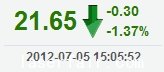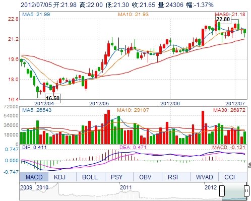 今 開: 21.98 成交量: 24306手 振 幅: 3.19% 最 高: 22.00 成交額: 5250.20萬 換手率: 1.19% 最 低: 21.30 總市值: 64.44億 市凈率: 5.31 昨 收: 21.95 流通...