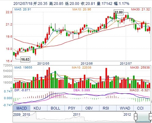 今 開: 20.35 成交量: 17142手 振 幅: 4.13% 最 高: 20.85 成交額: 3511.69萬 換手率: 0.84% 最 低: 20.00 總市值: 61.94億 市凈率: 5.10 昨 收: 20.57 流通...
