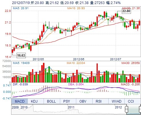 今 開: 20.80 成交量: 27263手 振 幅: 4.47% 最 高: 21.62 成交額: 5810.97萬 換手率: 1.33% 最 低: 20.69 總市值: 63.64億 市凈率: 5.24 昨 收: 20.81 流通...