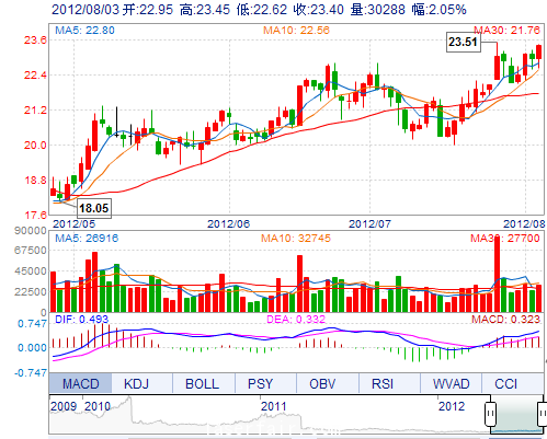 今 開: 22.95 成交量: 30287手 振 幅: 3.62% 最 高: 23.45 成交額: 7020.98萬 換手率: 1.66% 最 低: 22.62 總市值: 69.65億 市凈率: 5.48 昨 收: 22.93 流通...