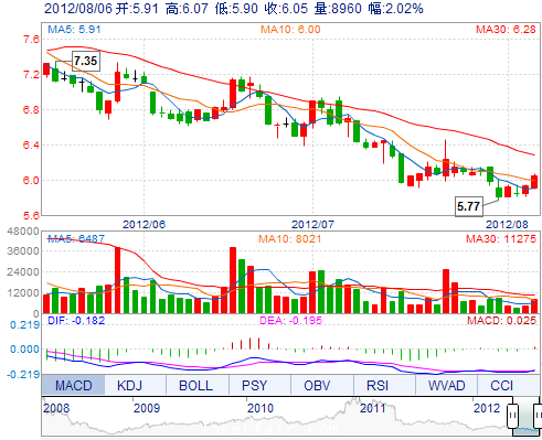 | 今 開: | 5.91 | 成交量: | 8960手 | 振 幅: | 2.87% |