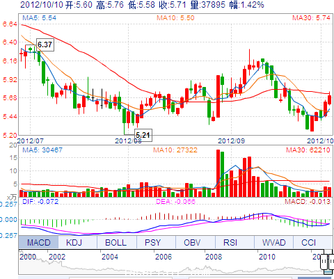 | 今 開(kāi): | 5.60 | 成交量: | 37895手 | 振 幅: | 3.20% |
