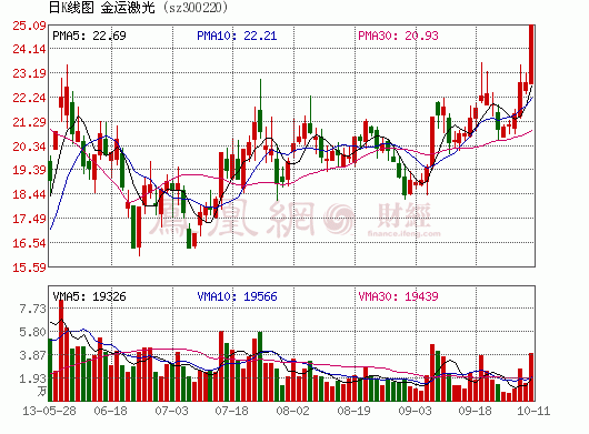 金運(yùn)激光10月11日漲停