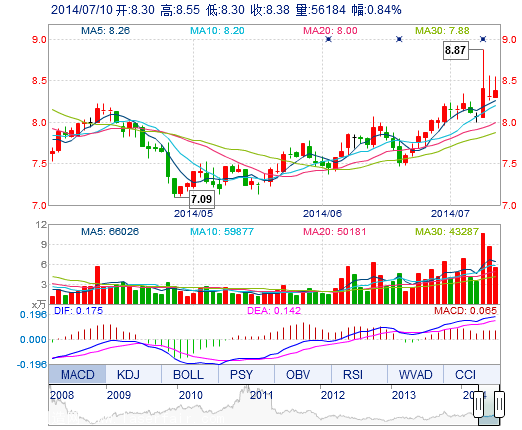 | 今 開: | 8.30 | 成交量: | 5.62萬手 | 振 幅: | 3.01% |