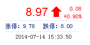 | 今 開: | 8.87 | 成交量: | 9.88萬手 | 振 幅: | 3.37% |