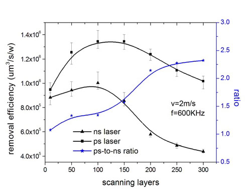 皮秒激光與納秒激光加工材料去除效率對(duì)比
