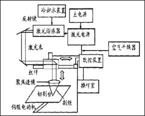 激光切割機是利用經(jīng)聚焦的高功率密度激光束照射工件,使被照射的材料迅速熔化、汽化、燒蝕或達到燃點,同時借助與光束同軸的高速氣流吹除熔融物質(zhì),從而實現(xiàn)將工件割開。激光切割屬于熱切割方法之一。激光切割機的原理見下圖。