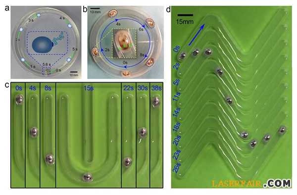 可變形液態(tài)金屬機(jī)器在內(nèi)含電解液的容器或各種槽道中的自主運(yùn)動(dòng)情形