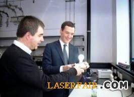 英國財政大臣George Osborne (右)拜訪曼徹斯特大學(xué)的國家石墨烯研究所,由諾貝爾獎得主Kostya Novoselov 陪同參觀其先進無塵室與實驗室