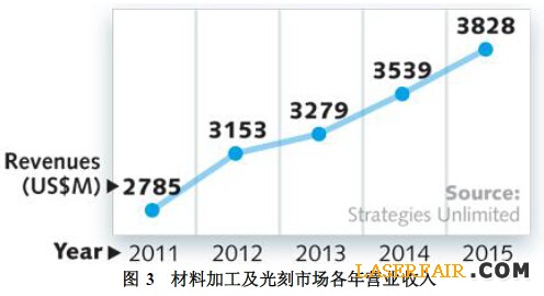 總結(jié)2014年工業(yè)激光市場(chǎng),打標(biāo)同比增長(zhǎng)4%;微材料加工增長(zhǎng)14%;大型材料加工擴(kuò)大8%。材料加工整體銷售增長(zhǎng)6%。