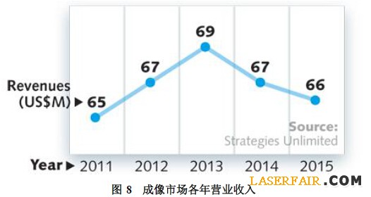 盡管出貨量增加了,打印機(jī)價(jià)格持續(xù)下跌,殘酷的價(jià)格競(jìng)爭(zhēng)侵蝕了銷售額增長(zhǎng)勢(shì)頭。至于2015年,預(yù)計(jì)用于成像應(yīng)用的激光市場(chǎng)將由2014年銷售額6700萬(wàn)美元下降到6600萬(wàn)美元。