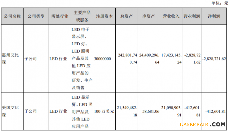 另外,公司分別公布了惠州子公司、美國(guó)子公司的業(yè)績(jī)情況。其中,惠州艾比森2014年度實(shí)現(xiàn)營(yíng)收1742.31萬(wàn)元,虧損282.87萬(wàn)元;美國(guó)艾比森2014年度實(shí)現(xiàn)營(yíng)收2109.09萬(wàn)元,虧損41.26萬(wàn)元。