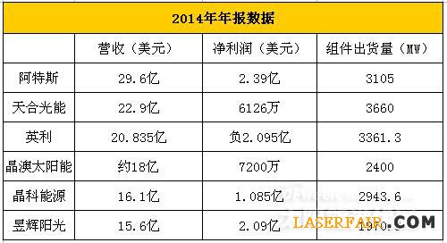財報顯示,2014財年,晶科能源營收額同比飆升41%,至4.79億美元,凈利潤額則同比增加了兩倍之多,達1.09億美元。
