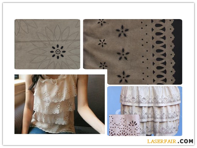 服裝激光燒花就是利用激光切割機激光的高能量密度特性,投射到服裝材料表面,將材料汽化,并在服裝材料表面產(chǎn)生清晰外形的加工