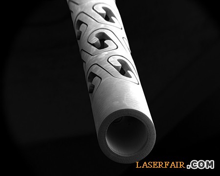 心血管支架的制造是一個明確證明,激光加工過程是從一個擠壓金屬管子切割出錯綜復(fù)雜的格子花紋。格子花紋可以支撐10μm寬度設(shè)計,通常包含了許多急彎處和柔性鉸鏈。常規(guī)激光加工會產(chǎn)生熱影響區(qū)(HAZ)和重塑金屬,后處理前必須完成最后拋光和支架的裝配。手動去毛刺和化學(xué)腐蝕是消除缺陷的常見方法,而這些需要為熟練工人和材料增加成本。