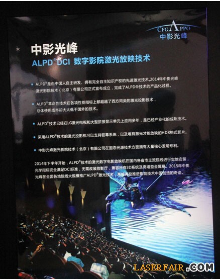 光峰光電作為顛覆性的ALPD高亮度熒光激光顯示技術的開創(chuàng)者,通過領先的ALPD激光熒光顯示技術,為客戶提供優(yōu)質(zhì)、環(huán)保、低能耗、全球領先的固態(tài)光源解決方案。目前公司產(chǎn)品廣泛應用于激光電影放映機、激光家庭影院、激光拼墻、教育投影、超短焦激光顯示系統(tǒng)等領域。本次會展的現(xiàn)場,光峰光電激光電影放映機項目負責人付偉對光峰光電的新型激光電影放映機進行了詳細解讀。據(jù)付偉介紹,此次光峰光電攜手中影展出的數(shù)字電影放映機DP2K-20L采用的ALPD激光技術,可實現(xiàn)2萬流明的亮度,其色彩表達和還原效果完全符合DCI標準,全面支持高增益金屬幕和所有類型的3D技術,將會給觀眾帶來與眾不同的觀影體驗。