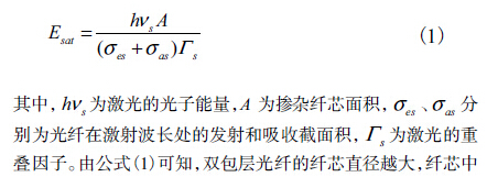 由公式(1)可知,雙包層光纖的纖芯直徑越大,纖芯中存儲的能量越高,才能從光纖中獲得更高能量的脈沖激光輸出。