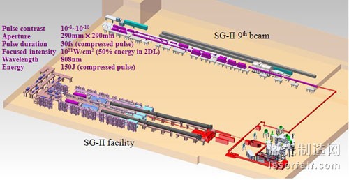 依托神光II裝置八路中的一束和神光II第九路激光,采用全OPCPA技術(shù)設(shè)計(jì)了數(shù)PW的超短脈沖激光實(shí)驗(yàn)平臺(tái)。