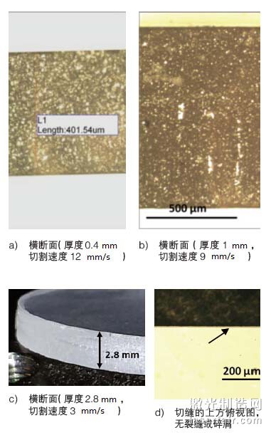 圖11 用QCW準(zhǔn)連續(xù)激光器切割不同厚度的藍(lán)寶石部件