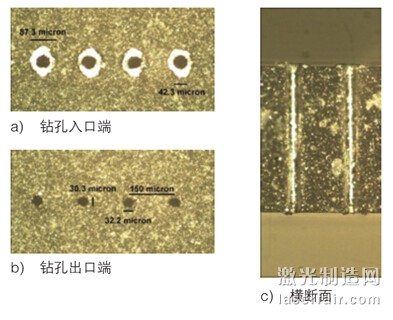 上述實(shí)驗(yàn)證明,在150 mm X 150 mm面積內(nèi),鉆孔定位的精確性達(dá)到±5 μm,如果將正常孔徑尺寸設(shè)為100%,則孔徑偏差可控制在±15% 范圍內(nèi)。在某些應(yīng)用中,偏差率還有望進(jìn)一步降低。