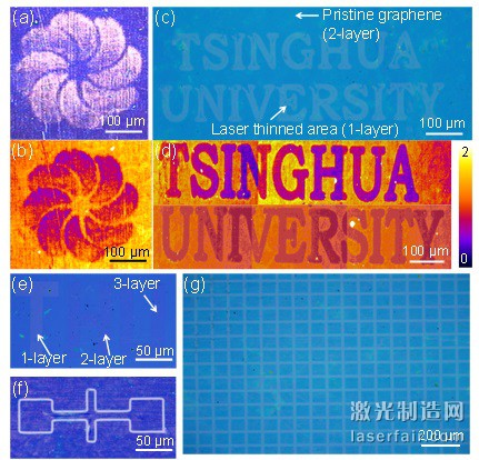 圖2超快激光圖案化減薄石墨烯得到的精確層數(shù)的石墨烯圖案