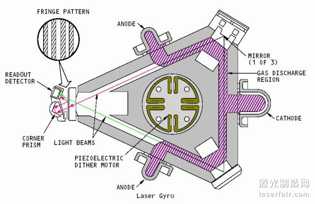 激光陀螺儀,顧名思義就是利用激光測(cè)方向變化的陀螺儀,其基本原理利用了光學(xué)中的塞格尼克理論,即在一個(gè)環(huán)形軌道里,發(fā)射兩束方向相反的激光。在環(huán)形軌道沒(méi)有轉(zhuǎn)動(dòng)的情況下,它將會(huì)用相同的時(shí)間導(dǎo)彈出發(fā)點(diǎn)并且具有相同的相位。