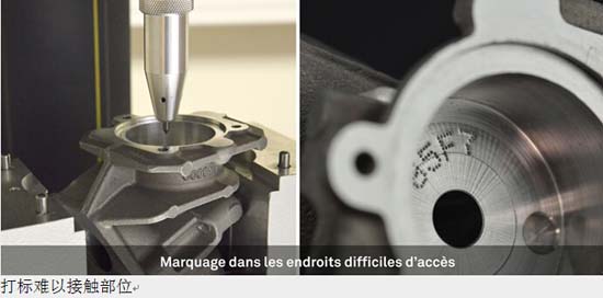 - 無需關(guān)注工件形狀就能打標(biāo):斜面,平面,變形表面,打標(biāo)針會(huì)精確跟蹤工件形狀自動(dòng)伸縮。