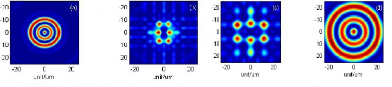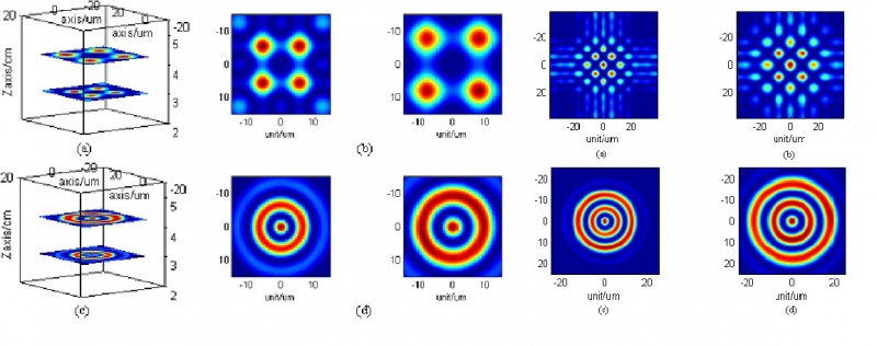 圖1 (上) 雙層矩形陣列焦斑;(下) 雙層環(huán)形陣列焦斑