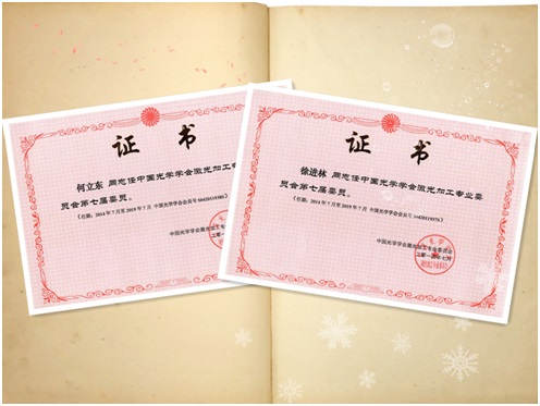 2016年1月,武漢華日精密激光有限公司總經(jīng)理何立東和技術(shù)總監(jiān)徐進(jìn)林正式獲得由中國光學(xué)學(xué)會(huì)激光加工專業(yè)委員會(huì)頒發(fā)的第七屆委員會(huì)委員證書。