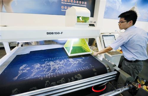 以東莞較為發(fā)達(dá)的服裝產(chǎn)業(yè)為例。據(jù)介紹,傳統(tǒng)的牛仔人工洗水工藝,需要大量的水和化學(xué)藥品,這對水資源、從業(yè)者身體健康傷害巨大,且各道工序加起來,至少需要1小時。而一臺激光機器,對著一件牛仔褲掃一掃,有水洗圖案效果的牛仔褲便出來了,前后僅需20秒鐘。而且1個工人便可操作4臺機器,約40人就可以完成傳統(tǒng)牛仔褲洗水工廠200名工人80%的工藝量。