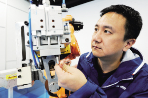 有的制造廠家把工業(yè)機(jī)器人買回家當(dāng)成“門衛(wèi)”,把激光工作站買回家當(dāng)成了“擺設(shè)”,主要原因就是不能解決多種設(shè)備集成到一起的問題。針對(duì)這一現(xiàn)象,湯旭東團(tuán)隊(duì)開發(fā)出了國(guó)內(nèi)領(lǐng)先的基于大功率激光加工的混合工藝復(fù)雜制造系統(tǒng)仿真技術(shù),把隨行壓輪、滾頭、焊鉗、抓手、涂膠機(jī)等自動(dòng)化設(shè)備有機(jī)整合在一起,讓機(jī)器人、激光工作站產(chǎn)生“1+1>2”的效應(yīng)。