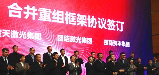 2月29日,湖北省激光行業(yè)重組暨楚天激光、團結(jié)激光合并大會在武漢召開。會上,楚天激光集團、團結(jié)激光集團和楚商資本集團共同簽訂了合并重組戰(zhàn)略協(xié)議。根據(jù)協(xié)議,兩家企業(yè)經(jīng)合并重組后,企業(yè)名稱將變更為“楚天團結(jié)激光”。按照目標,三年內(nèi),楚天團結(jié)激光將形成300億元以上的產(chǎn)值規(guī)模、市值500億元以上規(guī)模;五年內(nèi),形成800億元產(chǎn)值規(guī)模、市值1000億元規(guī)模、利稅200億元規(guī)模。