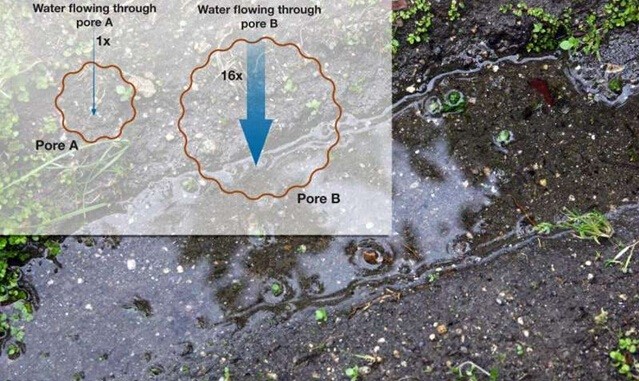 由于復(fù)雜的幾何形狀和科學(xué)性質(zhì),土壤孔隙大小對(duì)導(dǎo)水率特別重要。簡(jiǎn)單地說(shuō),與孔隙小的土壤相比,土壤孔隙大兩倍的土地,在同一時(shí)間量里,它的水流量要高出16倍。