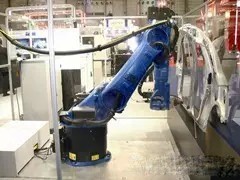 ?。?)激光焊接機(jī)器人基于機(jī)器人激光加工系統(tǒng)應(yīng)用于汽車(chē)制造業(yè)。汽車(chē)車(chē)門(mén)、底板激光遠(yuǎn)程掃描焊接成套設(shè)備。采用高功率光纖激光器或者碟片激光器, 研究機(jī)器人6軸與振鏡3軸的聯(lián)動(dòng)控制系統(tǒng),汽車(chē)底板激光遠(yuǎn)程掃描焊接生產(chǎn)線(xiàn)與汽車(chē)車(chē)門(mén)激光遠(yuǎn)程掃描生產(chǎn)線(xiàn)工藝規(guī)劃,激光遠(yuǎn)程掃描焊接工藝與質(zhì)量檢測(cè)技術(shù) 等,滿(mǎn)足三維車(chē)身焊點(diǎn)的高效定位,車(chē)門(mén)激光焊接長(zhǎng)度≥4000mm,底板激光焊接長(zhǎng)度≥4000mm,激光焊接速度≥30m/min,用于汽車(chē)工業(yè)具體操 作如圖5所示。