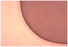 上圖為玻璃在400倍顯微鏡下的切割工藝圖,崩邊尺寸小于3微米,側(cè)壁光滑。
