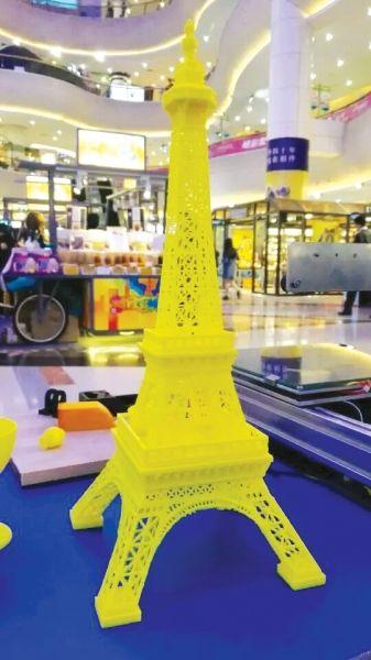 在劉虎的工作室里,各種標準和體量的儀器一字擺開。其中,一臺3D打印機正揮動著機械手臂,“勾勒”出一座30厘米高的埃菲爾鐵塔,一個“智腦”根據(jù)各種線條控制手臂速度,并以每層0.3毫米的厚度,層層疊加,實現(xiàn)3D立體效果。