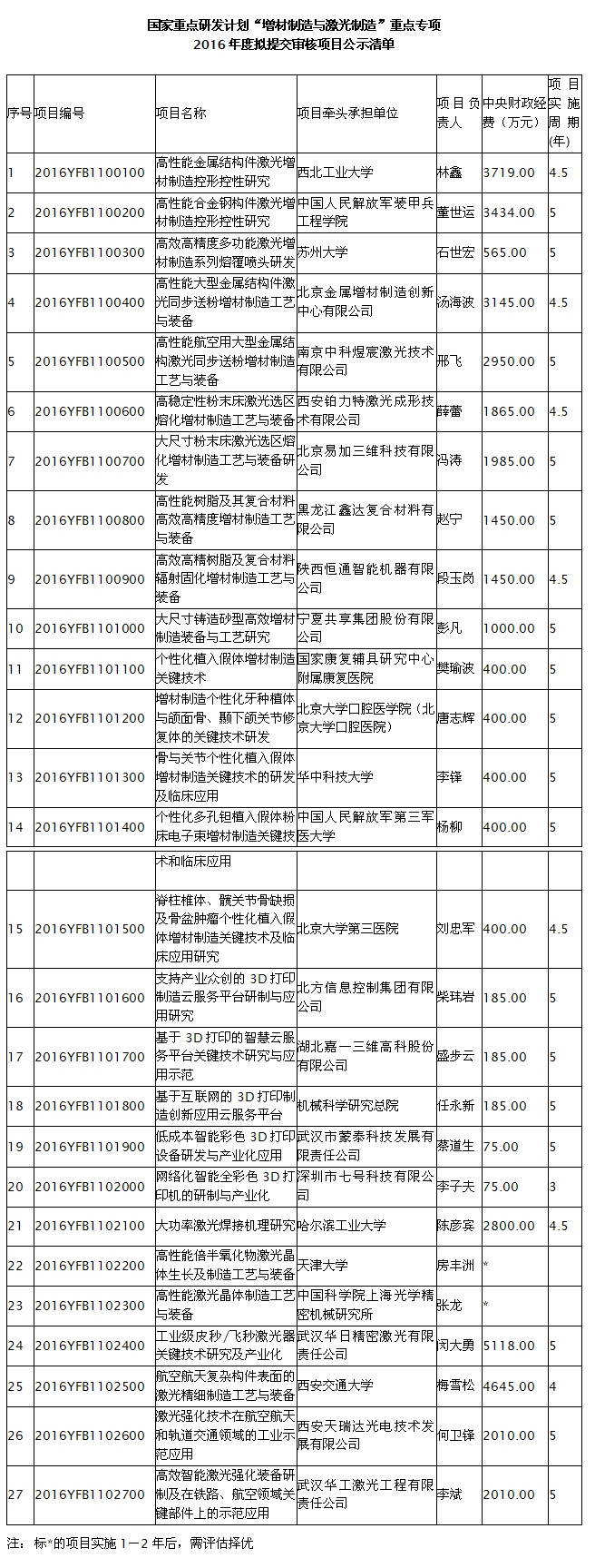 本次公布的國家重點(diǎn)研發(fā)計(jì)劃“增材制造與激光制造”重點(diǎn)專項(xiàng)涉及航空航天、醫(yī)療、互聯(lián)網(wǎng)等多個(gè)領(lǐng)域,共27項(xiàng)。