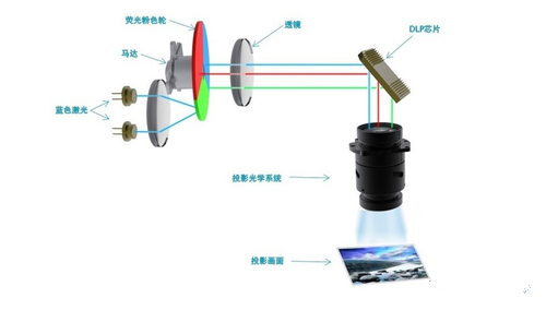 激光+熒光粉色輪光源投影機(jī)的技術(shù)原理圖