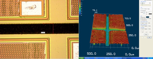 圖5 LOW-K晶圓開槽的表面效果圖和3D顯微鏡圖片